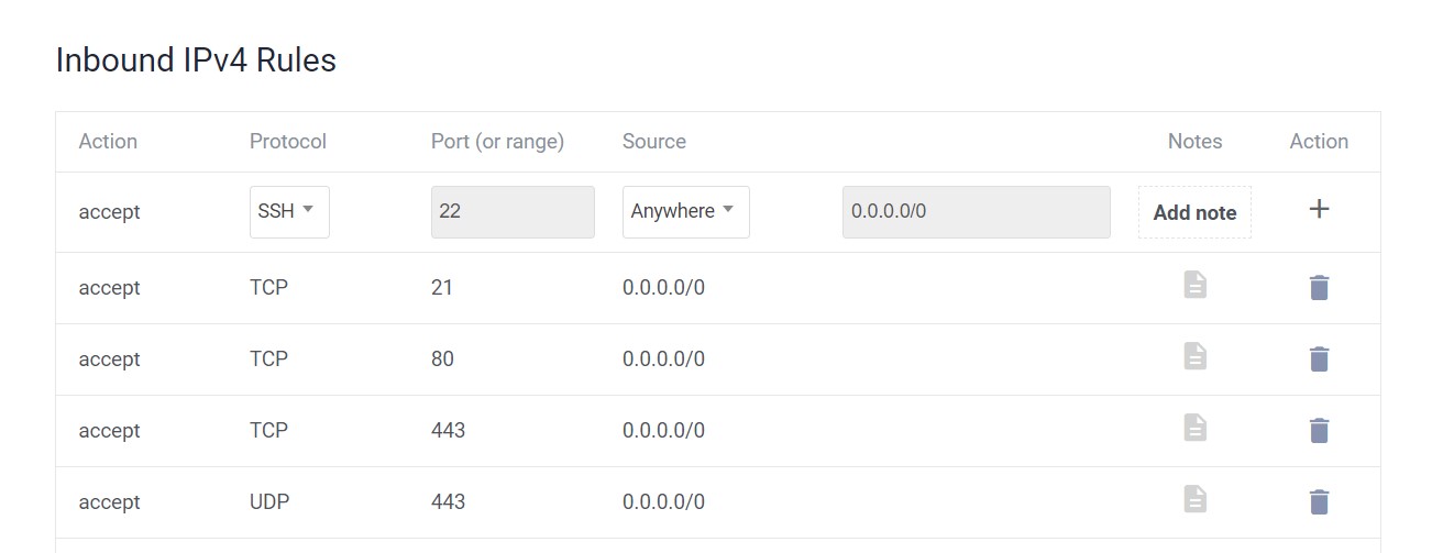 Örneğin alttaki vultr’de firewall yönetiminden bir resim;